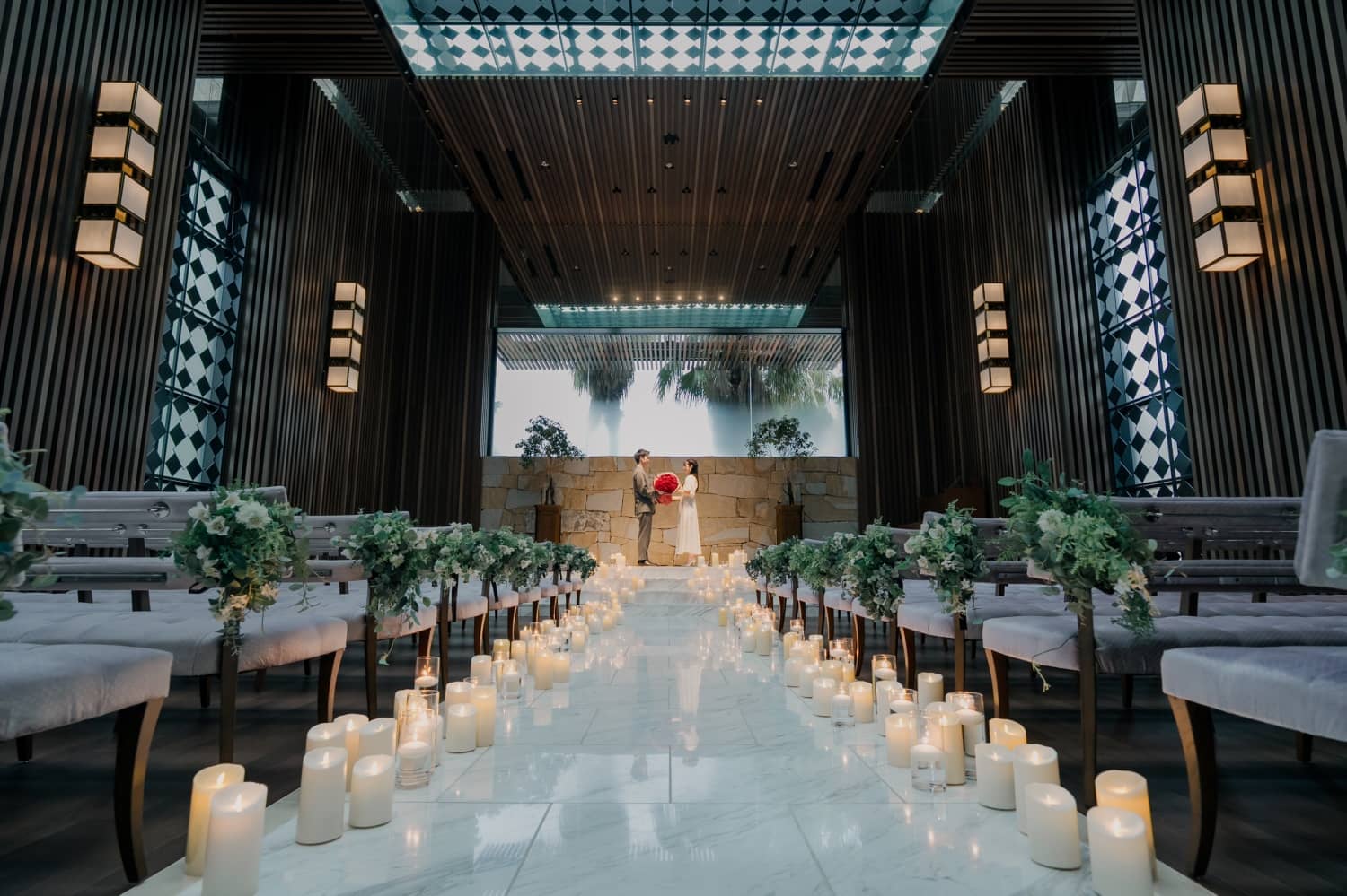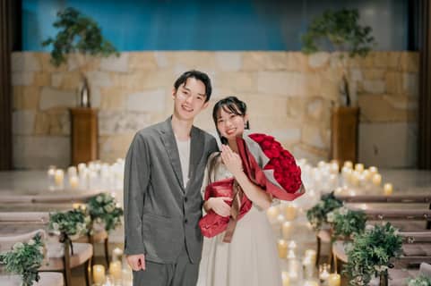より理想を叶える空間にリニューアルしたチャペル。キャンドルの灯りが幻想的に輝く空間でロマンチックなプロポーズが叶います。