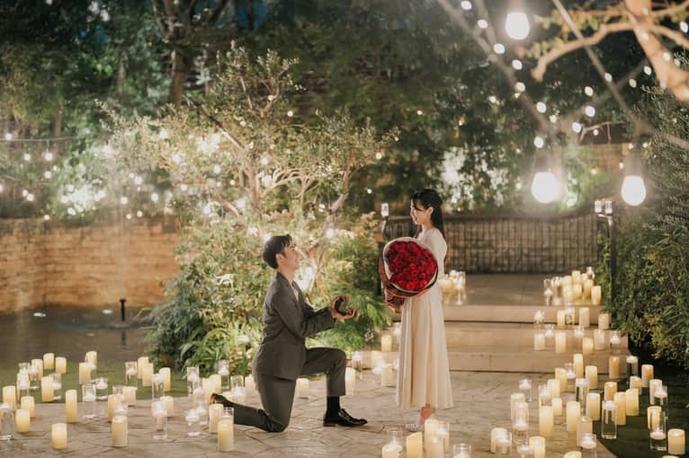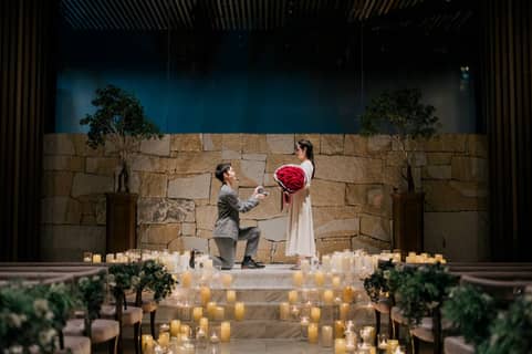 キャンドル煌めく空間でのプロポーズ